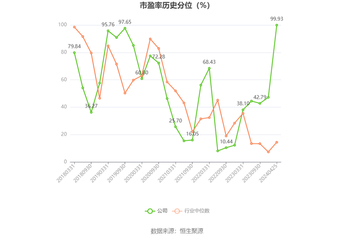 市盈率为负时,不显示当期分位数,会导致折线图中断。
