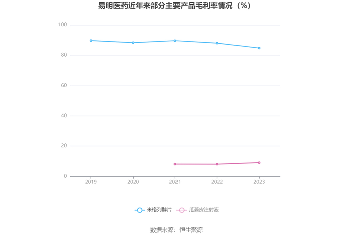 分产品看,米格列醇片、瓜蒌皮注射液2023年毛利率分别为84.65%、9.24%。