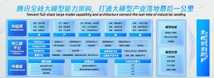汽车公司对大模型的需求增加是腾讯实现这一目标的基础推动力。4月24日,腾讯云在北京发布汽车行业大模型“全域智能”解决方案,涵盖模型、算力、AI工程平台到AI应用的全链条服务,全面渗入研发、生产到营销等各个环节,帮助汽车公司在大模型上车上全面提效。