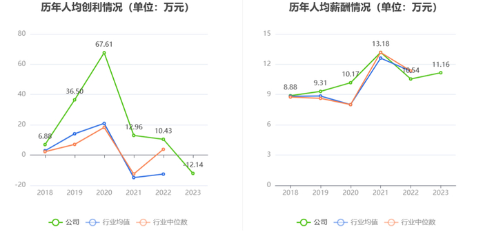 截至2023年末,公司员工总数为3306人,人均创收117.70万元,人均创利-12.14万元,人均薪酬11.16万元,较上年同期分别变化-12.70%、-216.43%、5.89%。