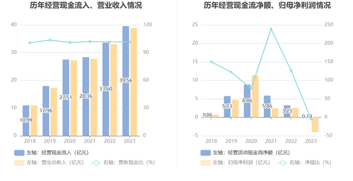 2023年,公司营业收入现金比为101.66%,净现比为-4.86%。