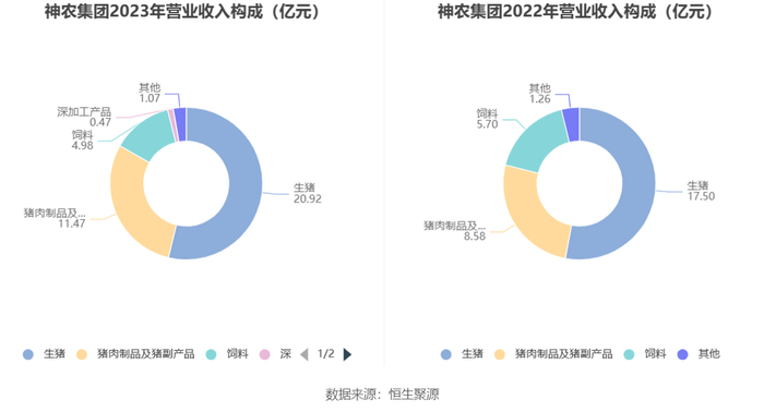 分产品看,生猪、猪肉制品及猪副产品、饲料2023年毛利率分别为2.61%、5.03%、13.58%。