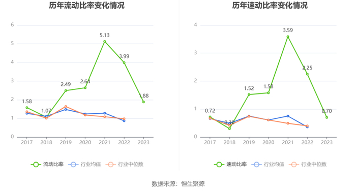 2023年,公司流动比率为1.88,速动比率为0.70。