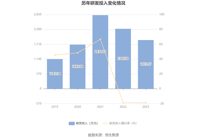 2023年全年,公司研发投入金额为1873.97万元,同比下降18.73%;研发投入占营业收入比例为0.48%,相比上年同期下降0.22个百分点。此外,公司全年研发投入资本化率为0。