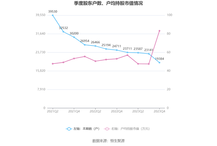 筹码集中度方面,截至2023年年末,公司股东总户数为1.94万户,较三季度末下降了3757户,降幅16.24%;户均持股市值由三季度末的47.58万元上升至83.24万元,增幅为74.95%。