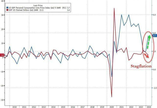 对于美国可能出现滞胀的警告自2021年以来不时出现,2022年和2023年间也曾多次被提及,但市场相信美国经济可能保持强劲,通胀可能逐渐消退。然而,本周四的数据出人意料地颠覆了这一想法,同时也让关于美国可能面临滞胀的辩论持续不断。