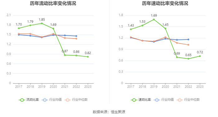 2023年,公司流动比率为0.82,速动比率为0.72。