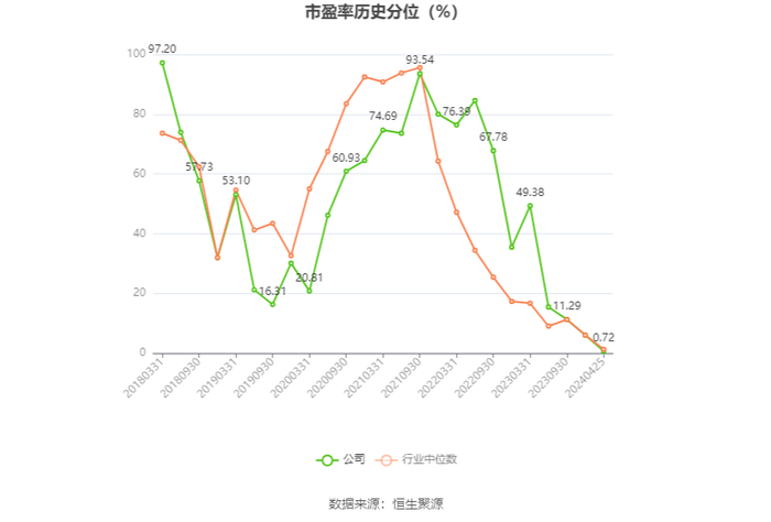 市盈率为负时,不显示当期分位数,会导致折线图中断。