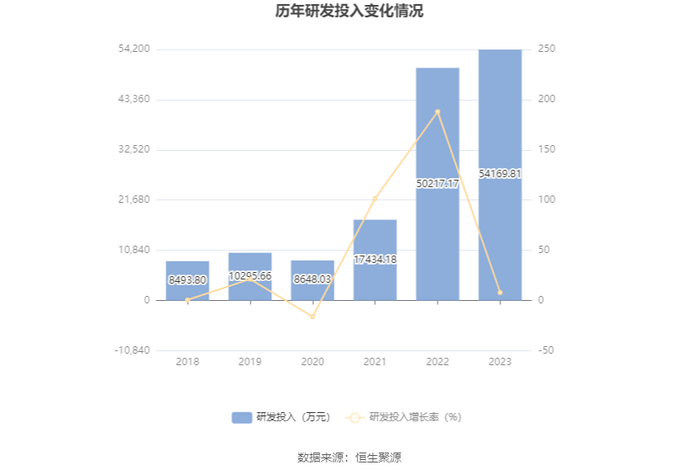 2023年全年,公司研发投入金额为5.42亿元,同比增长7.87%;研发投入占营业收入比例为2.34%,相比上年同期下降1.13个百分点。此外,公司全年研发投入资本化率为23.19%。