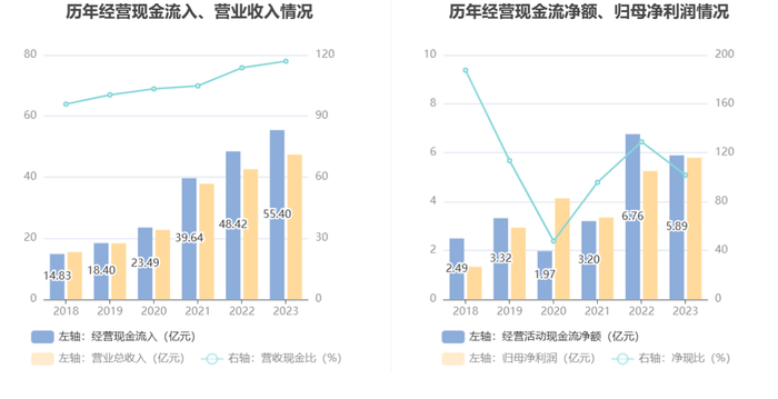 2023年,公司营业收入现金比为116.92%,净现比为101.66%。
