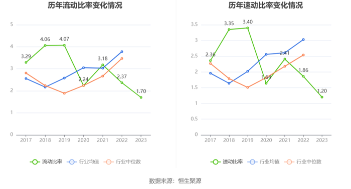 2023年,公司流动比率为1.70,速动比率为1.20。