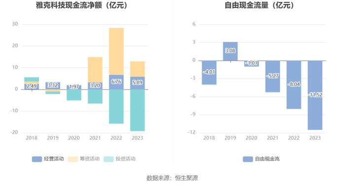 进一步统计发现,2023年公司自由现金流为-11.52亿元,上年同期为-8.04亿元。
