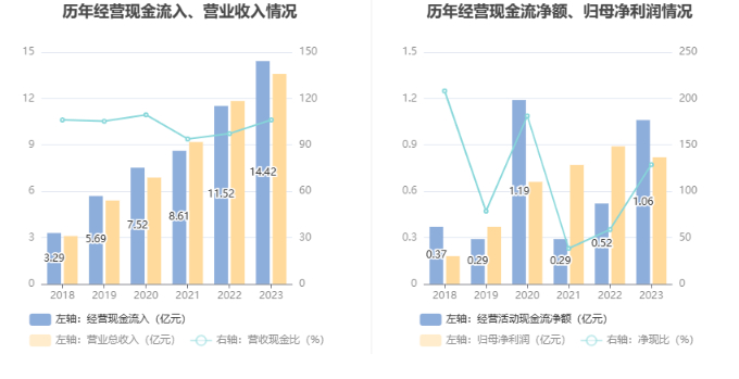2023年,公司营业收入现金比为106.12%,净现比为128.61%。