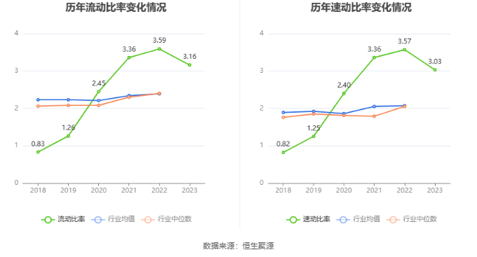 2023年,公司流动比率为3.16,速动比率为3.03。