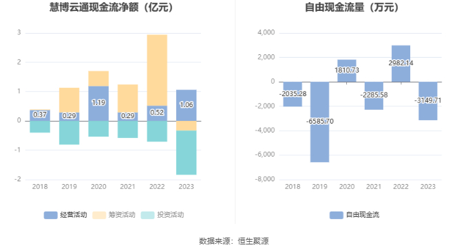 进一步统计发现,2023年公司自由现金流为-3149.71万元,上年同期为2982.14万元。