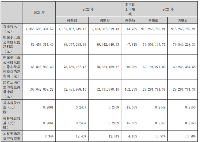 数据显示,2023年公司加权平均净资产收益率为8.34%,较上年同期下降4.1个百分点;公司2023年投入资本回报率为7.95%,较上年同期下降2.35个百分点。