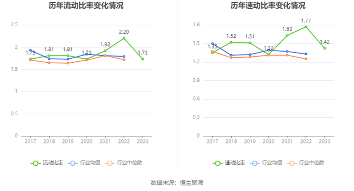 2023年,公司流动比率为1.73,速动比率为1.42。