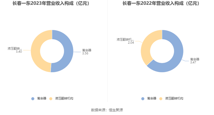分产品来看,2023年公司主营业务中,离合器收入3.56亿元,同比增长2.70%,占营业收入的51.12%;液压翻转机构收入3.40亿元,同比增长66.72%,占营业收入的48.88%。