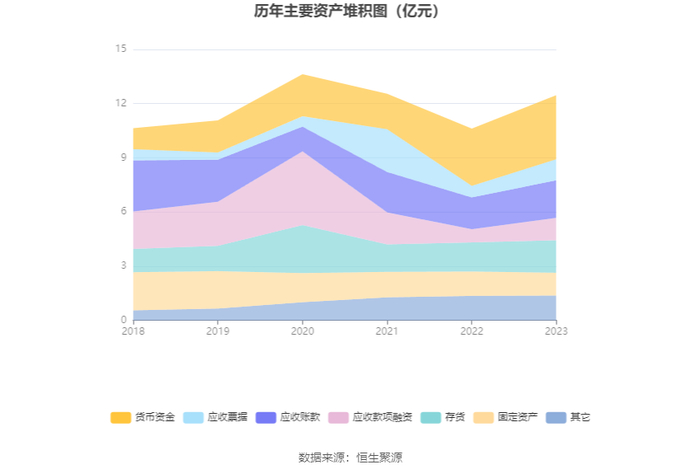 资产重大变化方面,截至2023年年末,公司应收票据较上年末增加83.46%,占公司总资产比重上升3.38个百分点;应收款项融资较上年末增加70.59%,占公司总资产比重上升3.10个百分点;固定资产较上年末减少7.08%,占公司总资产比重下降2.65个百分点;货币资金较上年末增加11.69%,占公司总资产比重下降1.44个百分点。