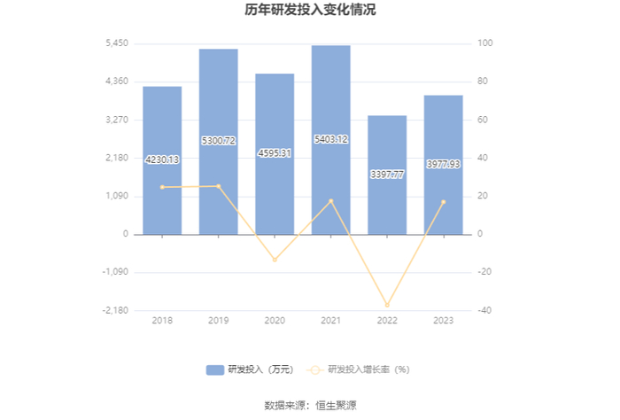 2023年全年,公司研发投入金额为3977.93万元,同比增长17.07%;研发投入占营业收入比例为5.71%,相比上年同期下降0.46个百分点。此外,公司全年研发投入资本化率为32.32%。