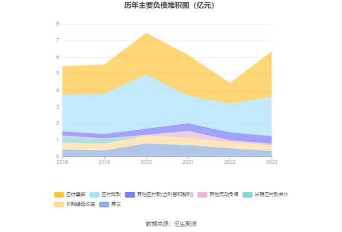 负债重大变化方面,截至2023年年末,公司应付票据较上年末增加119.40%,占公司总资产比重上升10.26个百分点;应付账款较上年末增加37.80%,占公司总资产比重上升2.82个百分点;租赁负债较上年末减少47.69%,占公司总资产比重下降1.15个百分点;其他流动负债较上年末减少21.37%,占公司总资产比重下降0.40个百分点。