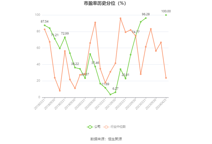 市盈率为负时,不显示当期分位数,会导致折线图中断。