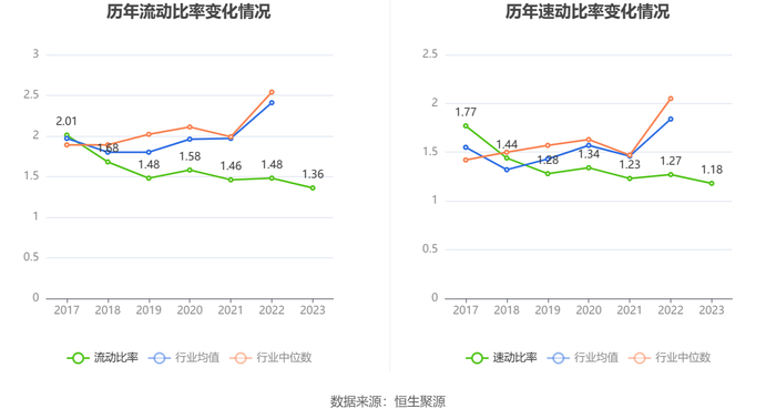 2023年,公司流动比率为1.36,速动比率为1.18。