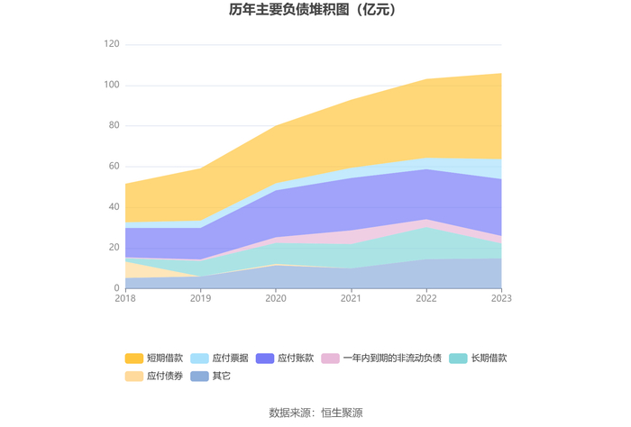 负债重大变化方面,截至2023年年末,公司长期借款较上年末减少53.06%,占公司总资产比重下降4.14个百分点;应付票据较上年末增加75.27%,占公司总资产比重上升1.76个百分点;短期借款较上年末增加8.92%,占公司总资产比重上升0.63个百分点;应付账款较上年末增加13.75%,占公司总资产比重上升0.93个百分点。