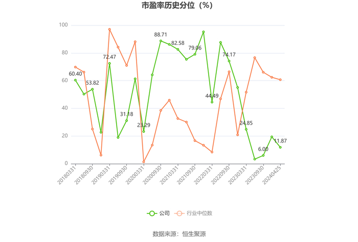市盈率为负时,不显示当期分位数,会导致折线图中断。