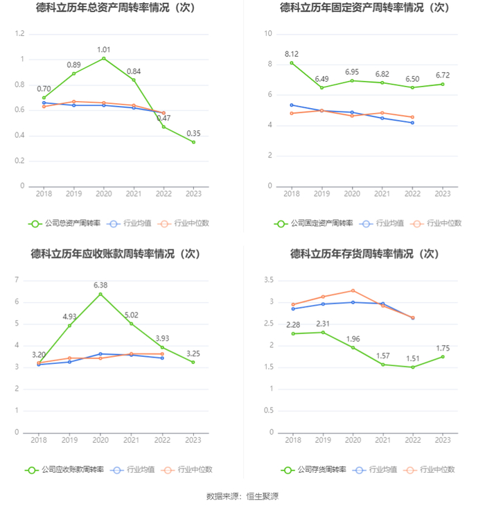 营运能力方面,2023年,公司公司总资产周转率为0.35次,上年同期为0.47次(2022年行业平均值为0.58次,公司位居同行业27/36);固定资产周转率为6.72次,上年同期为6.50次(2022年行业平均值为4.19次,公司位居同行业10/36);公司应收账款周转率、存货周转率分别为3.25次、1.75次。