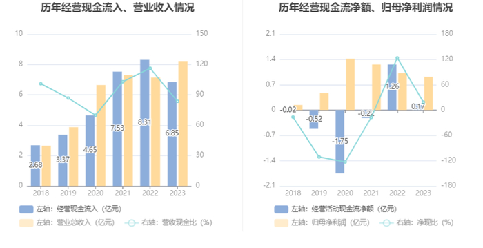 2023年,公司营业收入现金比为83.66%,净现比为18.92%。