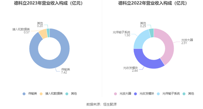 分产品来看,2023年公司主营业务中,传输类收入7.42亿元,占营业收入的90.66%;接入和数据类收入0.57亿元,占营业收入的6.97%。