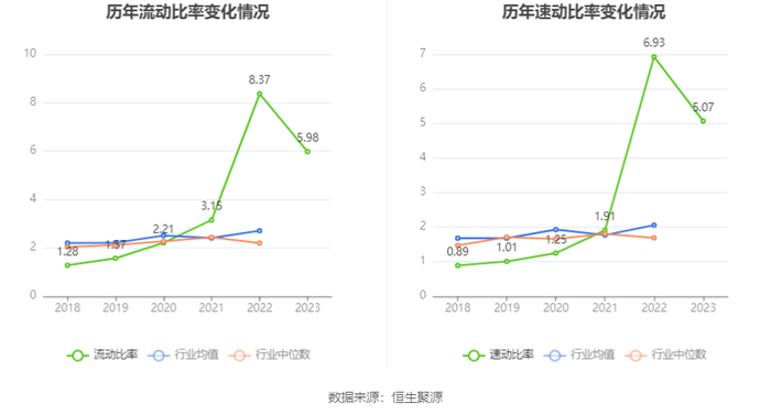 2023年,公司流动比率为5.98,速动比率为5.07。