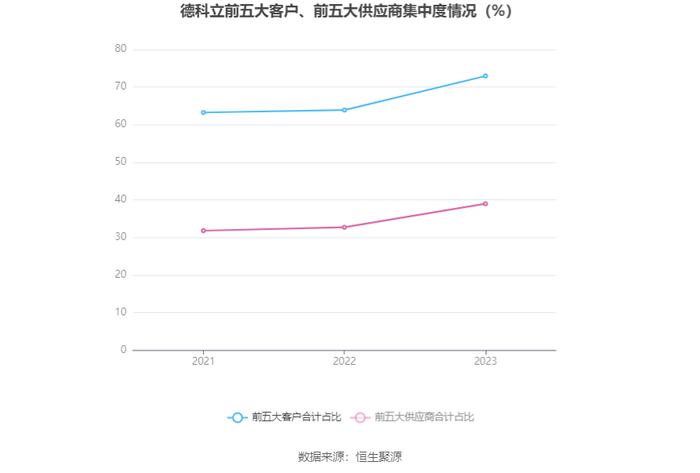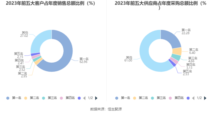 报告期内,公司前五大客户合计销售金额5.97亿元,占总销售金额比例为72.98%,公司前五名供应商合计采购金额2.13亿元,占年度采购总额比例为39.00%。