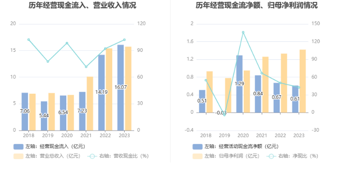 2023年,公司营业收入现金比为102.18%,净现比为42.70%。