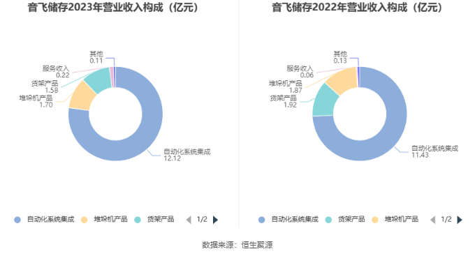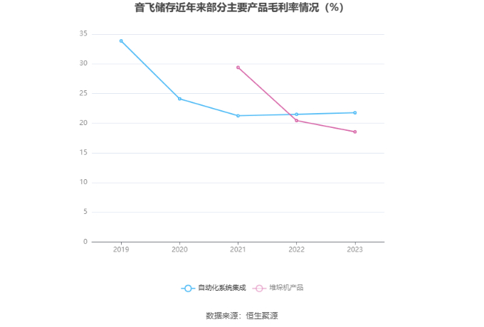 分产品看,自动化系统集成、堆垛机产品、货架产品2023年毛利率分别为21.76%、18.54%、19.37%。