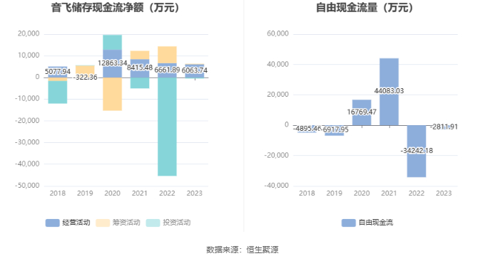 进一步统计发现,2023年公司自由现金流为-2811.91万元,上年同期为-34242.18万元。