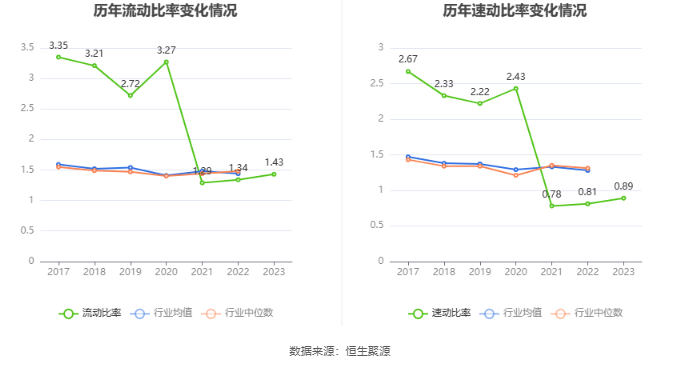 2023年,公司流动比率为1.43,速动比率为0.89。