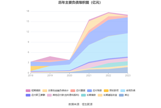 负债重大变化方面,截至2023年年末,公司应付票据较上年末减少64.09%,占公司总资产比重下降2.19个百分点;合同负债较上年末增加5.80%,占公司总资产比重上升0.90个百分点;一年内到期的非流动负债较上年末增加97.96%,占公司总资产比重上升1.18个百分点;应付账款较上年末减少2.91%,占公司总资产比重下降0.68个百分点。