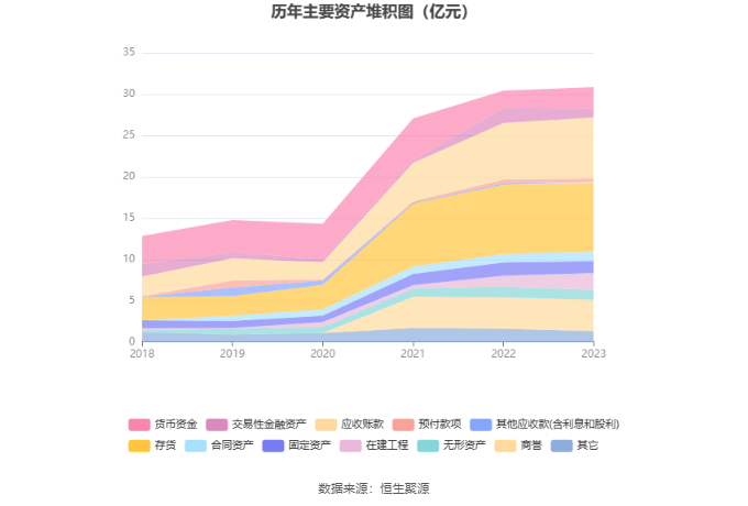资产重大变化方面,截至2023年年末,公司交易性金融资产较上年末减少41.11%,占公司总资产比重下降2.50个百分点;在建工程较上年末增加57.94%,占公司总资产比重上升2.41个百分点;其他非流动金融资产较上年末减少66.64%,占公司总资产比重下降1.77个百分点;货币资金较上年末增加24.27%,占公司总资产比重上升1.56个百分点。