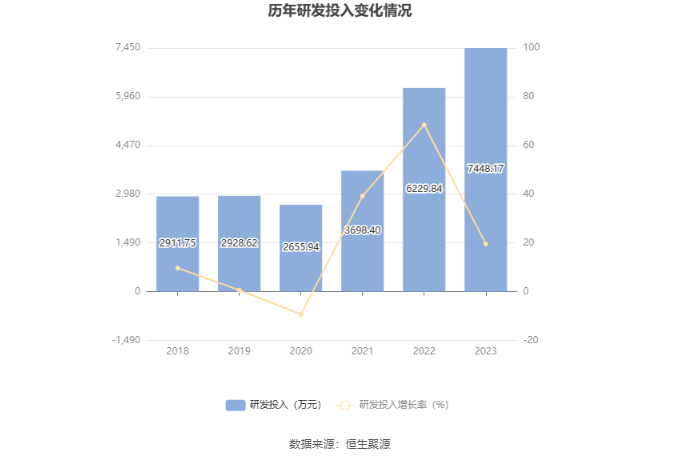 2023年全年,公司研发投入金额为7448.17万元,同比增长19.56%;研发投入占营业收入比例为4.73%,相比上年同期上升0.69个百分点。此外,公司全年研发投入资本化率为0。