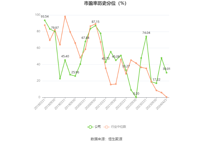 市盈率为负时,不显示当期分位数,会导致折线图中断。