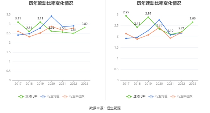 2023年,公司流动比率为2.82,速动比率为2.66。