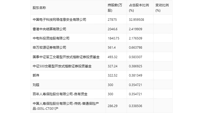 年报显示,2023年年末公司十大流通股东中,新进股东为百年人寿保险股份有限公司-自有资金,取代了三季度末的马金传。在具体持股比例上,刘超持股有所上升,香港中央结算有限公司、申万宏源证券有限公司、国泰中证军工交易型开放式指数证券投资基金、中证500交易型开放式指数证券投资基金、中国人寿保险股份有限公司-传统-普通保险产品-005L-CT001沪持股有所下降。