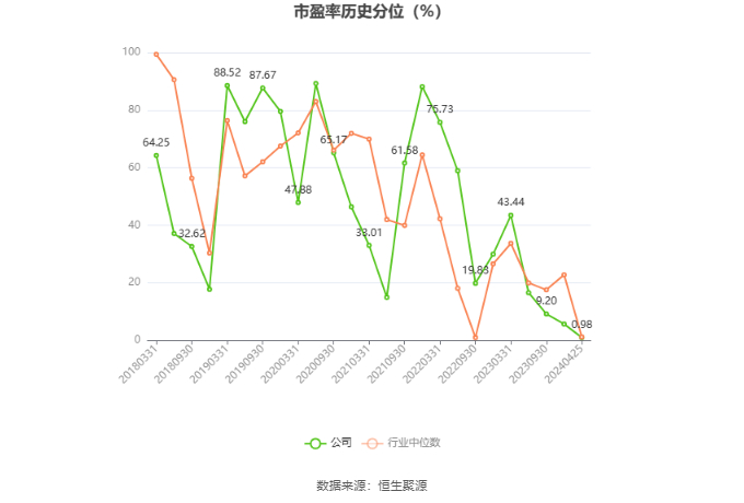 市盈率为负时,不显示当期分位数,会导致折线图中断。