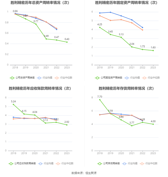 数据统计显示,胜利精密近三年营业总收入复合增长率为-28.88%,在消费电子零部件及组装行业已披露2023年数据的72家公司中排名第70。近三年净利润复合年增长率为-233.84%,排名67/72。