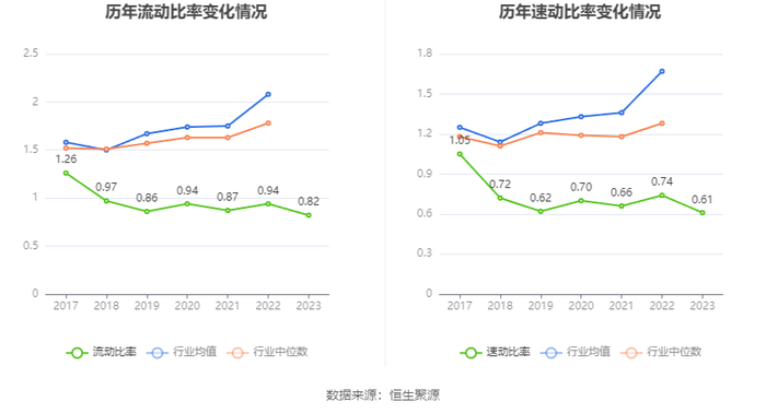 2023年,公司流动比率为0.82,速动比率为0.61。