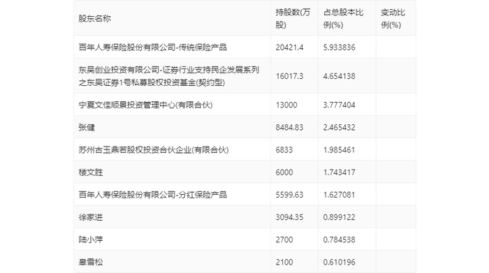 年报显示,2023年年末公司十大流通股东中,新进股东为皋雪松,取代了三季度末的香港中央结算有限公司。在具体持股比例上,张健持股有所上升,宁夏文佳顺景投资管理中心(有限合伙)、陆小萍持股有所下降。