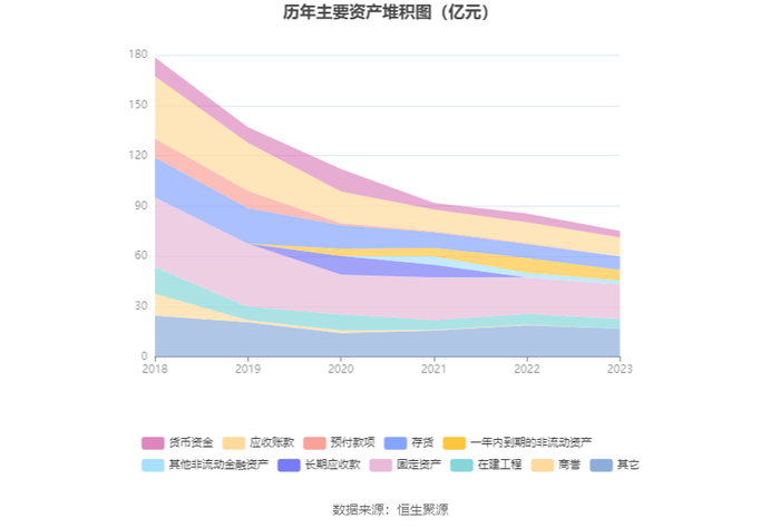 资产重大变化方面,截至2023年年末,公司固定资产较上年末减少5.20%,占公司总资产比重上升2.02个百分点;一年内到期的非流动资产较上年末减少29.27%,占公司总资产比重下降1.99个百分点;其他应收款(含利息和股利)较上年末减少74.81%,占公司总资产比重下降1.84个百分点;存货较上年末减少2.51%,占公司总资产比重上升1.08个百分点。