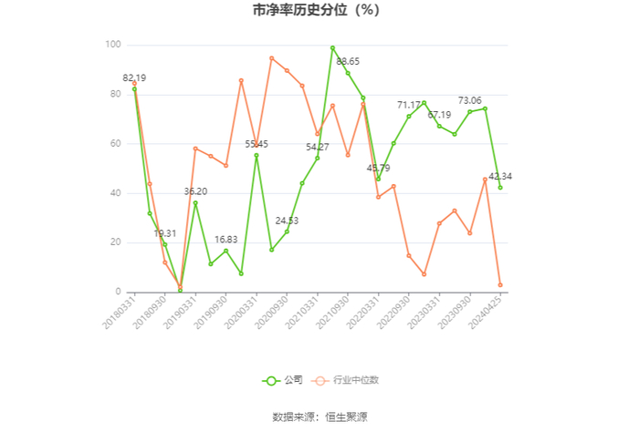 以4月25日收盘价计算,胜利精密目前市盈率(TTM)约为-5.52倍,市净率(LF)约为1.52倍,市销率(TTM)约为1.49倍。